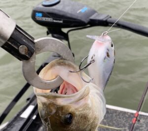 Lures: Z-Man Chatterbait (sexy shad) with BPS Speed Shad trailer (sight fish) – 7 bass