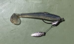 3.8” Bass Pro Shops Speed Shad (K’s Magic) with a 3/16 oz. Owner Flashy Swimmer jighead