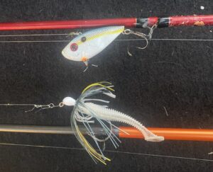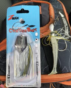 Lures: Z-Man Chatterbait (sexy shad) with BPS Speed Shad trailer (sight fish) – 8 bass