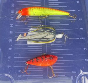 Lures: Z-Man Chatterbait (sexy shad) with BPS Speed Shad trailer (sight fish) – 5 bass