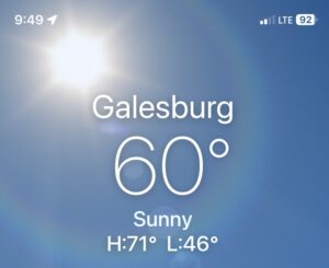 Weather: Sunny/windy, 60-71F