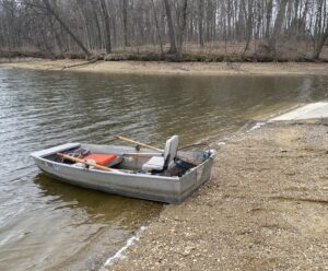 Ramps – As a consequence of the lake remaining lowered, launching a boat is not possible at the east ramp and at your own risk on the west ramp. The east ramp is high and dry, and the west ramp has a nasty drop at the end which could damage your boat trailer. For this reason, I opted to go old school and drag my little johnboat down in proximity to the west ramp to take my shot. In addition, I stuck with oars rather than having to lug around a trolling motor and battery. It worked fine, just as it did all those years ago.