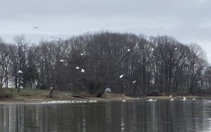 Drawdown – Normally the lake would be near full pool as winter snowmelt and runoff bring the water level back to normal. However, the lake remains close to full drawdown. The explanation that I have heard is that the lake will remain lowered to facilitate the construction of a walking path extension on the south side of the lake. Currently, there is a path that runs along the west and north sides of the lake. Completion of the project will make a circuit around the entire lake area.