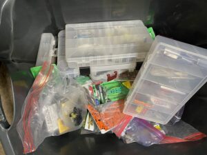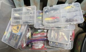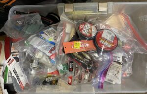 Based on when, where, and how I am fishing, I gear up a bit differently prior to each trip. Lure selection changes over the course of the year and the types of water that I am fishing also dictate what I am casting. In addition, I alter the amount of tackle that I haul depending on whether I am hiking, biking, rowing the little boat, or trolling the big boat. As the year progresses this makes for a mess in my tackle bag and tubs. The offseason gives me a chance to organize, determine what needs to be replaced, and discard any broken-down baits.