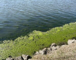 Shoreline scum, submerged slime, and dingy water greeted me on this visit